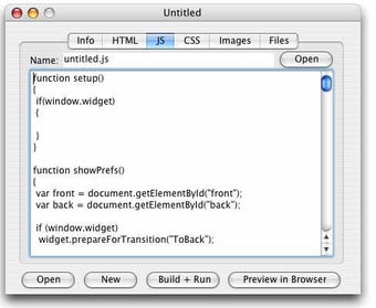 Ofrece una modalidad de previsualización del widget a través del navegador web, aunque también podrás compilar y ejecutar el widget recién horneado directamente desde Dashboard. Su interfaz está bien estructurada, en torno a una serie de pestañas para el código HTML, Javascript, CSS, las imágenes y ficheros.